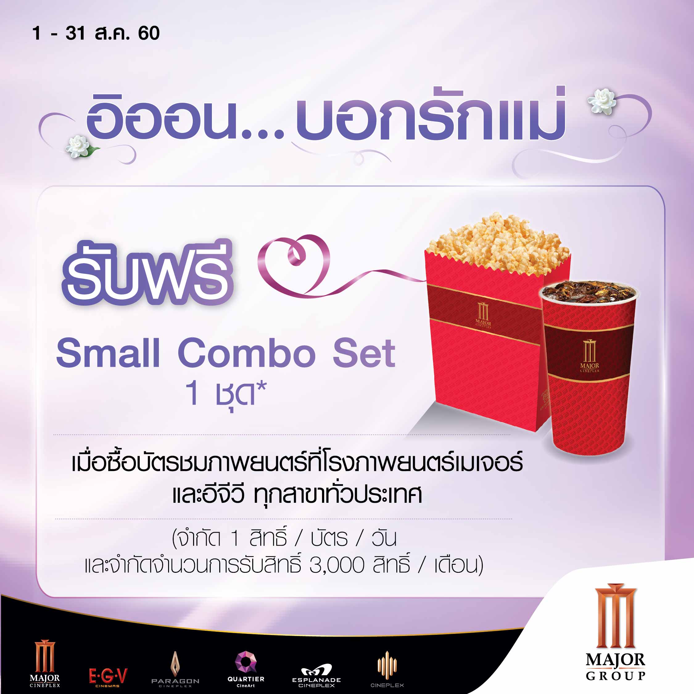 ลูกค้าบัตรเครดิตอิออน รอยัล ออร์คิด พลัส แพลทินัม, บัตรเครดิตอิออน โกลด์, บัตร อิออนคลาสสิค และ บัตรที่ร่วมรายการ รับสิทธิ์แลกป๊อปคอร์น Combo Set ป๊อบคอร์น 64 ขนาด 32 ออนซ์ และน้ำอัดลมขนาด 32 ออนซ์ จำนวน 1 ชุด ฟรี ที่จุดบริการ M-Corner