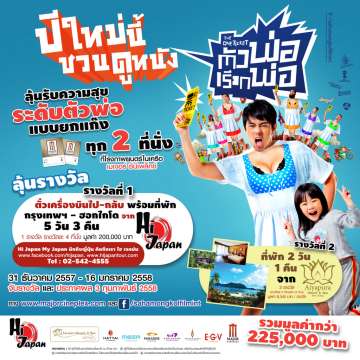ผู้โชคดีที่ได้รับรางวัลตั๋วเครื่องบิน ไป-กลับ พร้อมที่พัก กรุงเทพฯ-ฮอกไกโด 5 วัน3 คืน โดยสายการบิน การบินไทย จาก Hi - Japan จำนวน 1 รางวัล มูลค่า 200,000 บาท (ไม่รวมภาษีมูลค่าเพิ่ม)
