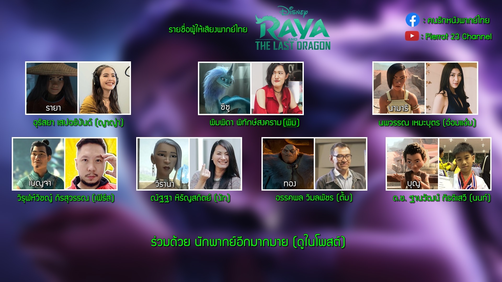 แฟนเพจ คนรักหนังพากย์ไทย ได้เผย รายชื่อผู้ให้เสียงพากย์ไทยฉบับเต็มๆของ Raya and the Last Dragon (2021) ดังนี้