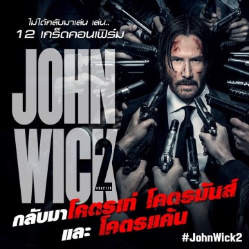 John Wick: Chapter Two (จอห์น วิค: แชปเตอร์ ทู) แรงกว่านรก 2 เตรียมพาผู้ชมไปพบกับเรื่องราวของ จอห์น วิค ที่ได้รับเดิมพันสำคัญจากอดีตสหายนักฆ่าให้เดินทางไปยังกรุงโรม ประเทศอิตาลี เพื่อต่อกรกับ “องค์กรนักฆ่าเงาข้ามชาติ” อันเรียกได้ว่าเป็นสมาคมสุดยอดนักฆ่าของโลก งานนี้รับรองว่าจะต้องเรียกเสียงฮือฮาและมันส์สะใจผู้ชมอย่างแน่นอน!