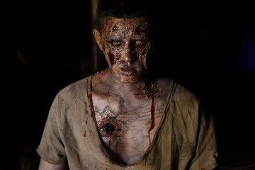 มันพร้อมที่จะกัดอย่างเดียวเลย ได้วิ่งหนีผีตอนตี 2 ตี 3 อดหลับอดนอนแต่ทุกคนทุ่มเทมาก จะได้เห็นผีที่ทุกคนต้องกลัว ผมยังกลัวเลย เขาแต่งมาตอนไปอยู่มุมมืดสักมุมอย่างนี้ เดินหรือหันไปเจอตกใจ นี่ยังไม่รวมถึงพาร์ทแอ็คชั่นต้องมีฉากที่แบบตัดคอผีห่า แล้วทางทีมเอฟเฟกต์ ทำออกมาดีมาก ลองติดตามดูว่ามันจะเลือดสาดกระจุยกระจายแค่ไหน เพราะขนาดตอนถ่ายนี่เลือดกระจายเข้าหน้าเต็มเลย”