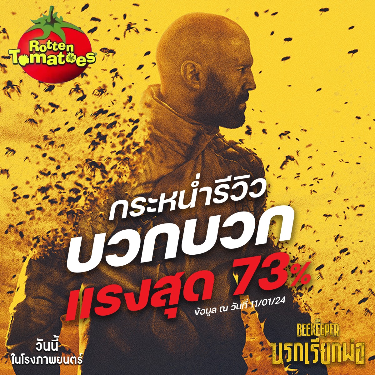 เปิดปี 2024 ด้วยความเดือดระอุไปกับภาพยนตร์บล็อกบัสเตอร์สุดมันส์ “The Beekeeper นรกเรียกพ่อ” ในเรื่องราวการล้างแค้นแก๊งคอลเซ็นเตอร์ นำโดยตัวพ่อแอ็กชัน “เจสัน สเตแธม” ที่ล่าสุดหนังกวาดคะแนนจากเว็บไซต์ Rotten Tomatoes สูงถึง 73% พร้อมกับโกยคำชมจากนักวิจารณ์และสื่อต่างๆมากมาย ทั้งฉากแอ็กชันที่ได้รับการเนรมิตมาอย่างดุดัน จังหวะสุดมันส์ที่ดูแล้วใจเต้นรัว เลือดสูบฉีดเต็มพิกัด รวมถึงนักแสดงอย่าง เจสัน สเตแธม และผู้กำกับ เดวิด เอเยอร์ ที่แท็กทีมปล่อยความมันส์เอาใจคอหนังบู๊กันถ้วนหน้า