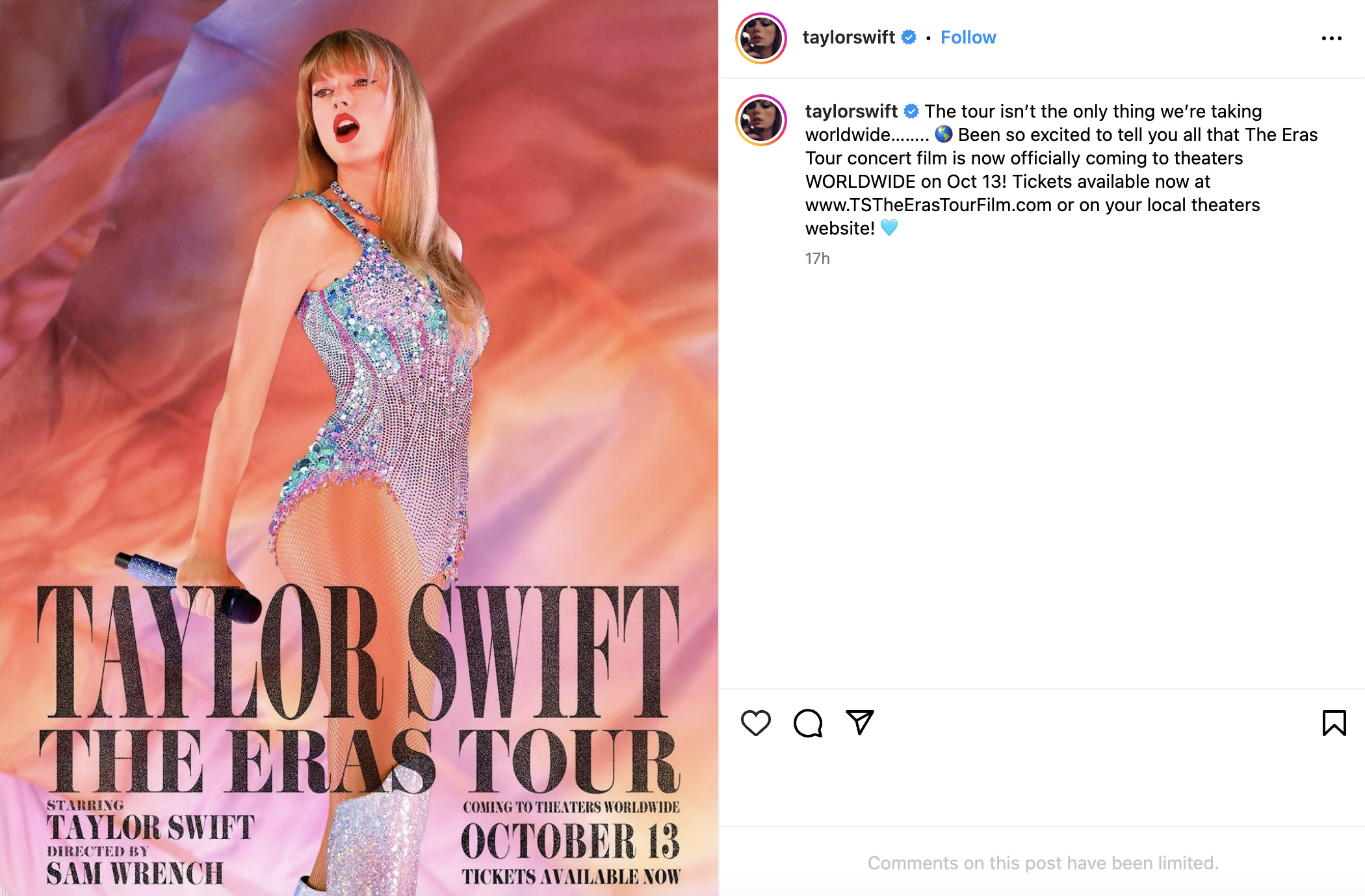 โดยการประกาศดังกล่าวถูกเปิดเผยออกมาผ่านอินสตาแกรมอย่างเป็นทางการของ เทย์เลอร์ สวิฟต์ พร้อมกับการเปิดจำหน่ายบัตรชมภาพยนตร์ล่วงหน้าทันทีในช่วงเย็นเมื่อวานนี้