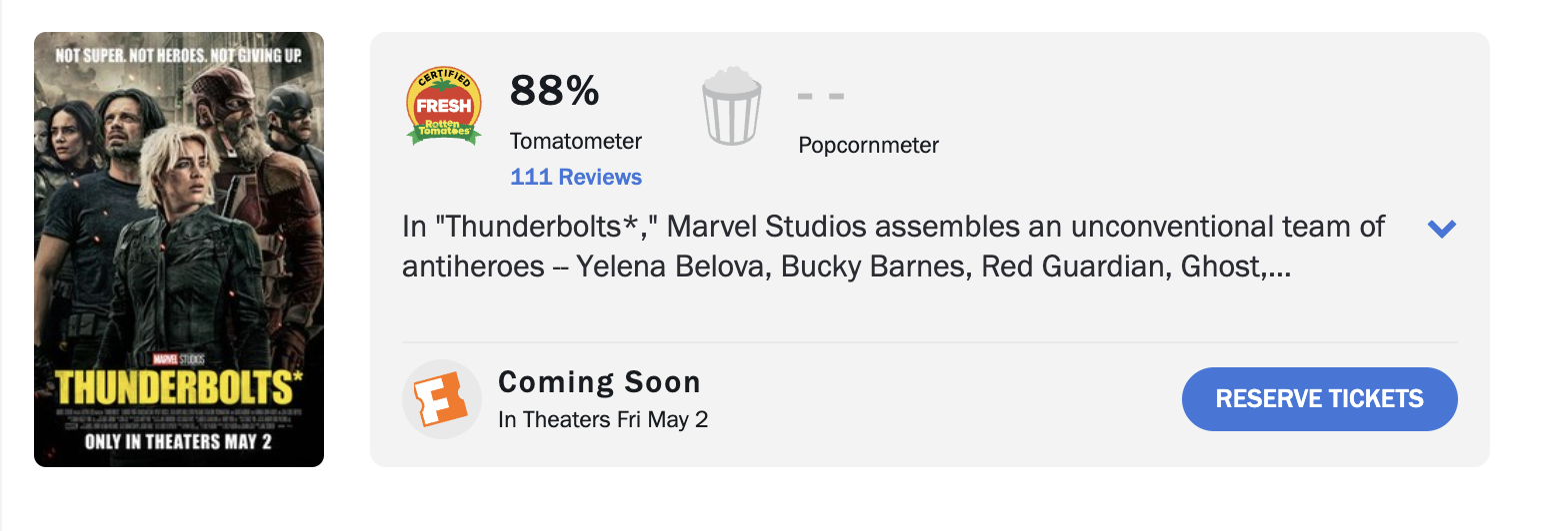 Thunderbolts* หรือ ธันเดอร์โบลต์ส* มีกำหนดเข้าฉายในโรงภาพยนตร์ในวันที่ 1 พฤษภาคม ที่จะถึงนี้