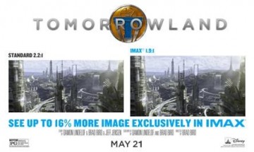 ซึ่งขณะนี้ได้รับข้อมูลยืนยันจาก IMAX® แคนนาดาว่า ภาพยนตร์ Tomorrowland ที่กำลังจะเข้าฉายในวันที่ 21 พ.ค นี้ จะทำให้เห็นภาพเมืองแห่งอนาคตกว้างขึ้น เต็มจอ IMAX Digital จัดเต็มด้วยอัตราส่วนเพื่อ IMAX โดยเฉพาะ เต็มตากว่าเฉพาะในโรง IMAX เท่านั้น โดยทาง ผกก.Brad Bird ได้เลือกถ่ายทำภาพยนตร์ด้วยอัตราส่วนพิเศษสำหรับจอ IMAX โดยเฉพาะ ซึ่งผู้ชมสามารถเห็นภาพได้กว้างขึ้นถึง 16% เฉพาะในโรงภาพยนตร์ระบบ IMAX เท่านั้น ส่วนโรงภาพยนตร์ระบบอื่นๆภาพจะถูกตัดบน-ล่างออกเนื่องจากจอภาพปกติไม่รองรับอัตราส่วนภาพดังกล่าว