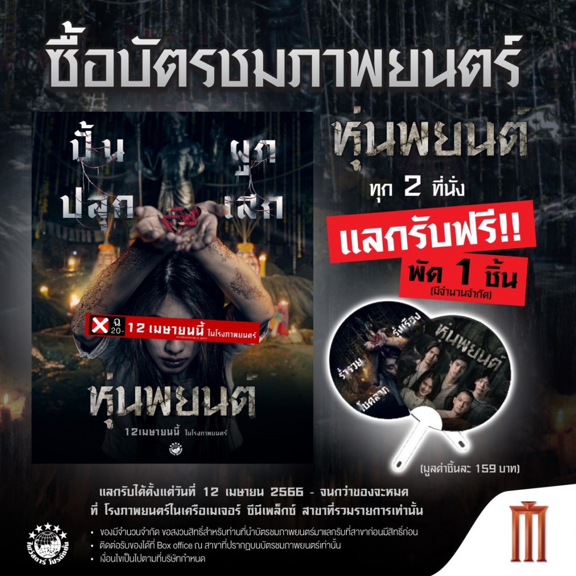 · ซื้อบัตรชมภาพยนตร์เรื่อง หุ่นพยนต์ ทุก 2 ที่นั่ง สามารถแลกรับพัดฟรี 1 ใบ