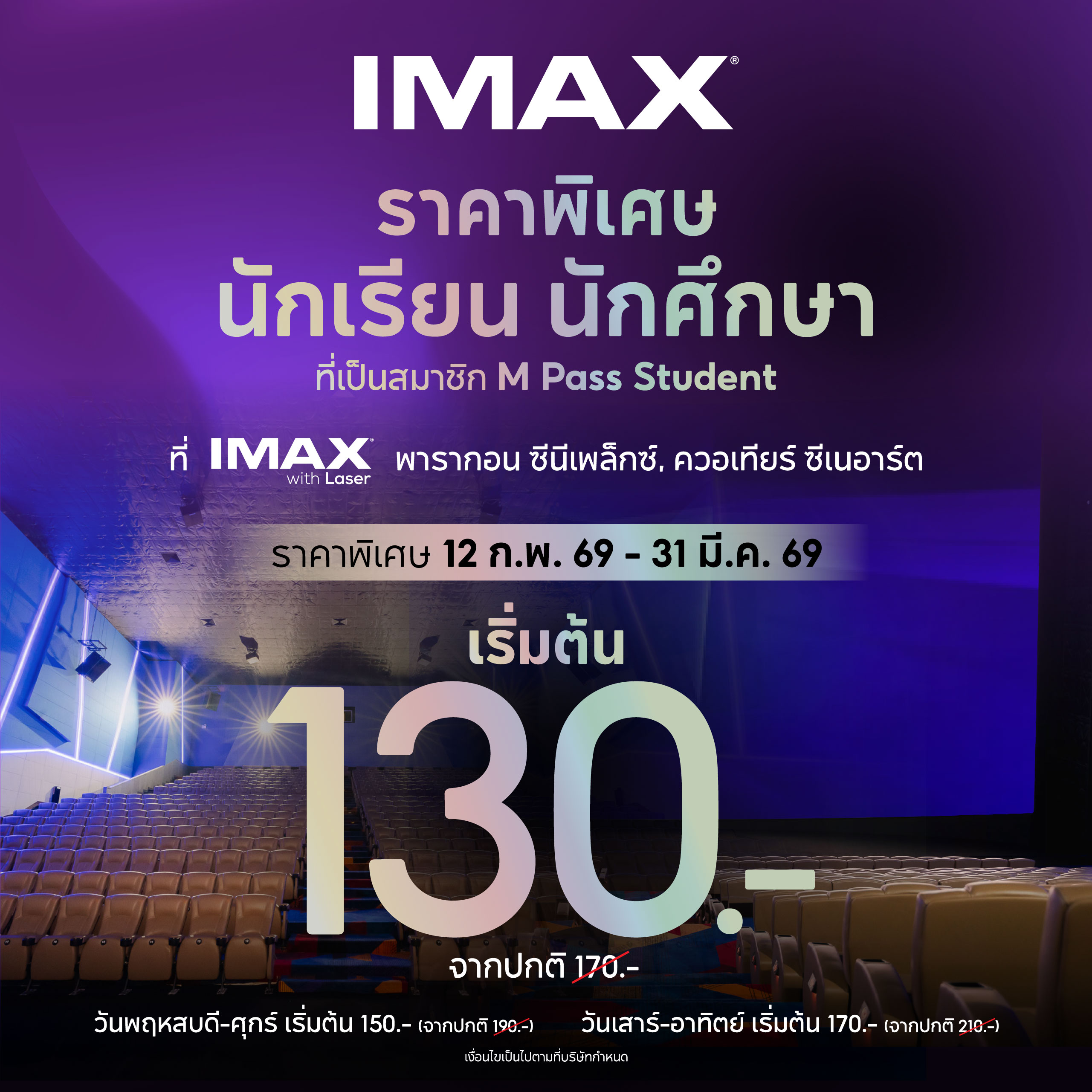 ราคาพิเศษสำหรับนักเรียน MGen/MPass ระบบ IMAX ถึง 12 ก.พ. - 31 มี.ค.69