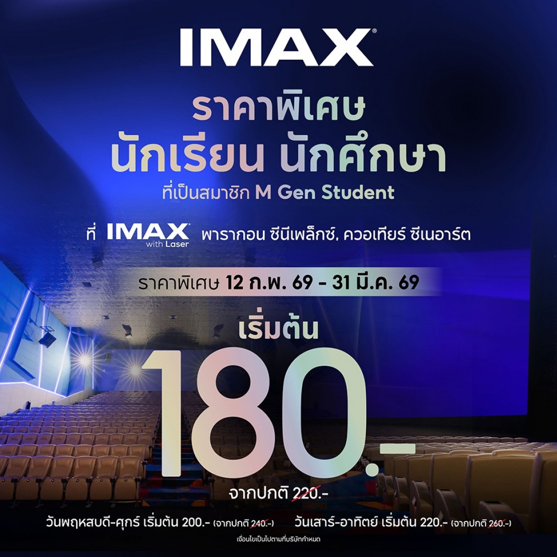 ราคาพิเศษสำหรับนักเรียน MGen/MPass ระบบ IMAX ถึง 12 ก.พ. - 31 มี.ค.69