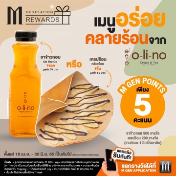 คะแนน M GEN แลกรับเครปและเครื่องดื่มจากร้าน o-li-no