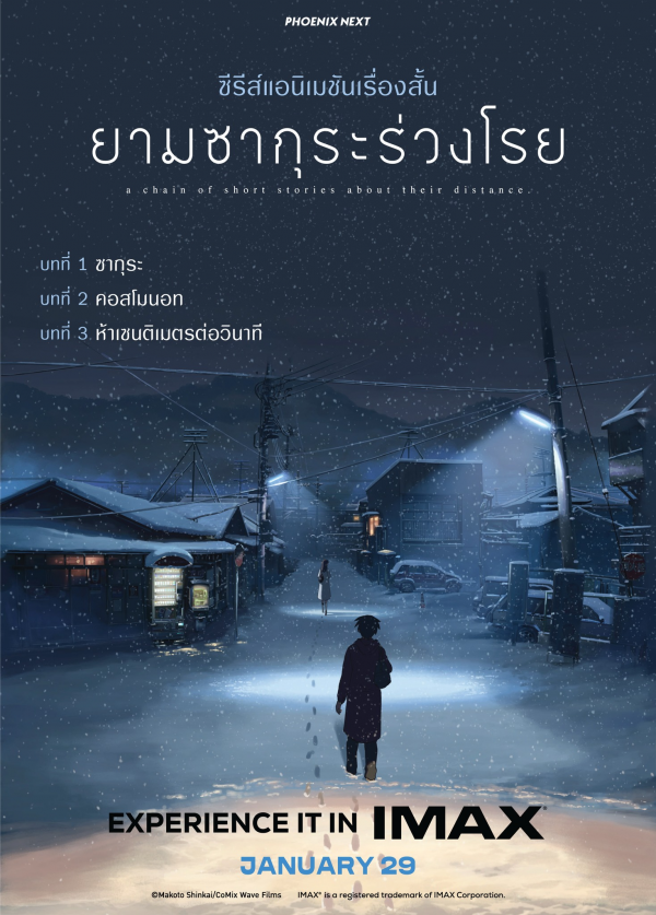 ในคืนหนึ่งของฤดูหนาว ชั้นมัธยมต้น ทากากิและอาคาริได้กลับมาพบกันอีกครั้ง ภายใต้ต้นซากุระต้นเดียวที่ยืนอยู่กลางหิมะ พวกเขาสัญญาครั้งสุดท้าย ว่าจะพบกันอีกในวันที่ 26 มีนาคม ค.ศ. 2009