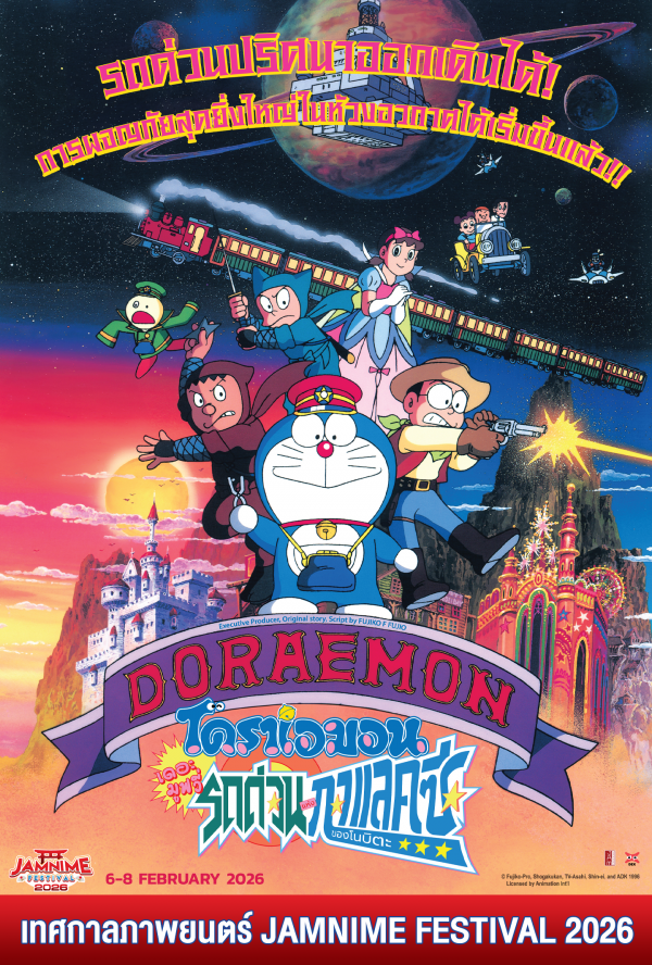 โดราเอมอน โนบิตะ และผองเพื่อนต่างกระโดดขึ้นรถด่วนกาแล็กซีซูเปอร์เอ็กซ์เพรสมุ่งหน้าสู่สวนสนุกในจักรวาล ทุกคนกำลังสนุกสนานกันอย่างสนุกสนานในสวนสนุก