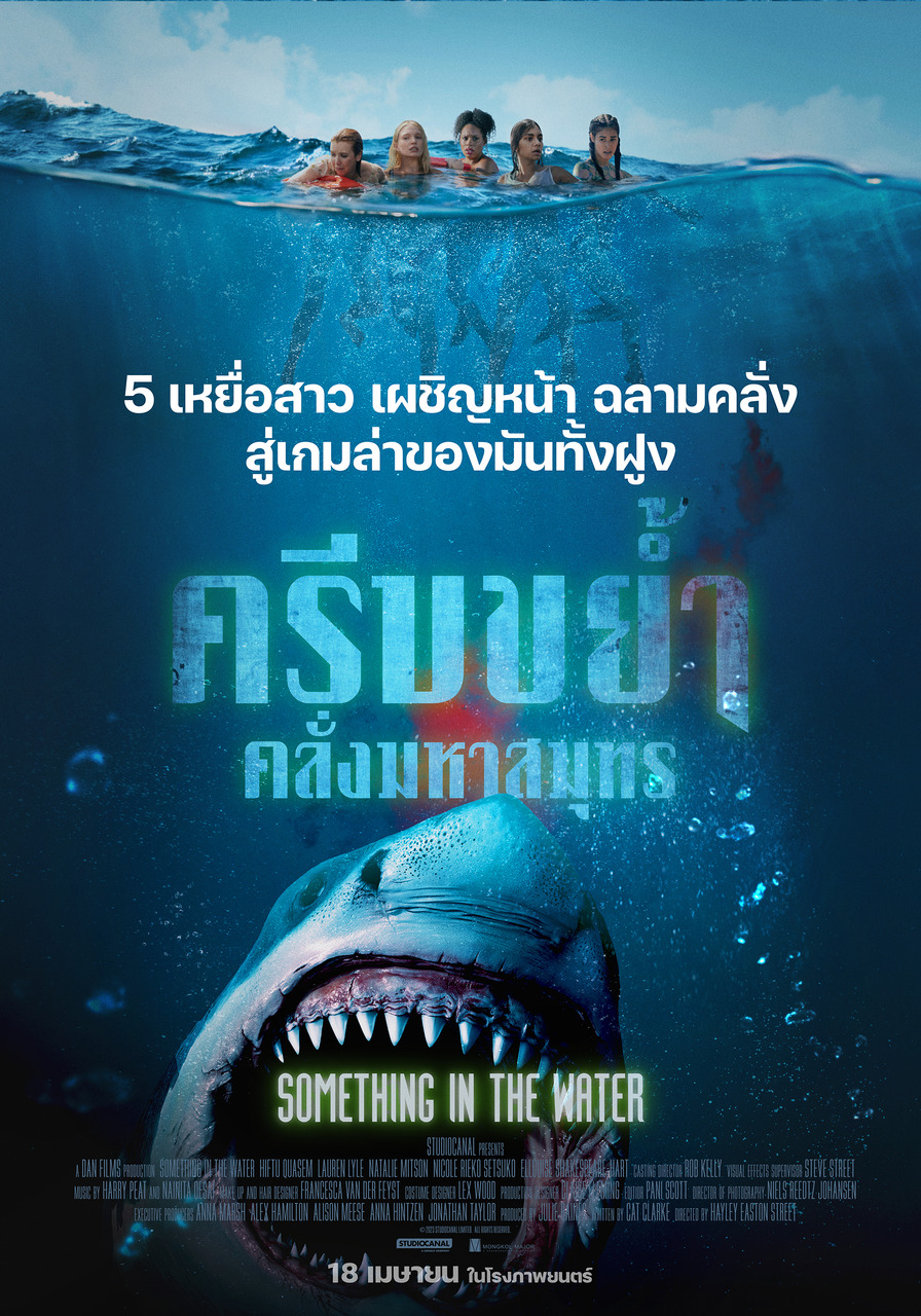 “Something in the Water” ภาพยนตร์แอ็กชันระทึกขวัญที่ “มงคลเมเจอร์” พร้อมพาคุณเข้าสู่เกมล่าที่ฉลามเป็นผู้ไล่ไม่มีที่สิ้นสุดกับโปสเตอร์ชื่อไทย “ครีบขย้ำ คลั่งมหาสมุทร” ที่ออกมาตอกย้ำความสนุกสุดสยองของหนังที่มีส่วนผสมอันลงตัวระหว่าง “Jaws” (1975) และ “Bridesmaids” (2011) ที่คนดูจะได้เจอกับความหฤหรรษ์ของฉลามสุดหฤโหดที่พร้อมเล่นเอาตายกับมิตรภาพสุดแซ่บของแก๊งเพื่อนหญิงสุดซี้ที่จะดึงดูดแฟนหนังทั้งสองแนวได้อย่างอยู่หมัด