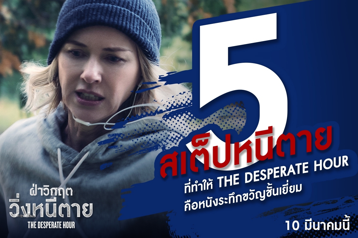 ก่อนที่จะได้ลุ้นระทึกพร้อมกันในโรงภาพยนตร์ วันนี้เราขอเปิด 5 สเต็ปหนีตาย ที่ทำให้ “The Desperate Hour ฝ่าวิกฤต วิ่งหนีตาย” คือหนังระทึกขวัญชั้นเยี่ยมที่คุณไม่ควรพลาดให้ได้รู้ก่อนลุ้น 10 มีนาคมนี้