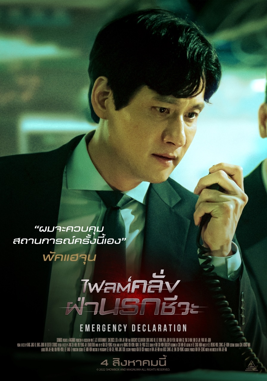 เดินหน้าพร้อมเปิดน่านฟ้าความระทึกกับหายนะคลั่งครั้งใหม่ที่โลกต้องเผชิญ ใน “Emergency Declaration ไฟลต์คลั่ง ฝ่านรกชีวะ” ครั้งแรกของภาพยนตร์แอ็กชั่นฟอร์มยักษ์ทุ่มทุนสร้างเป็นประวัติการณ์จากเกาหลี ที่หยิบเอาเหตุการณ์ภัยพิบัติทางอากาศมานำเสนอได้อย่างสมจริง การันตีคุณภาพ และความยอดเยี่ยมของภาพยนตร์ด้วยทีมสร้าง และเหล่านักแสดงระดับแถวหน้าของเอเชียที่มีผลงานระดับอินเตอร์ ซึ่งแท๊กทีมมาร่วมเผยบทบาทและคีย์เวิร์ดสำคัญใน “โปสเตอร์คาแรกเตอร์” อย่าง “ซงคังโฮ” (นักแสดงระดับบล็อกบัสเตอร์จาก Parasite ล่าสุดกับรางวัลนักแสดงชายยอดเยี่ยมคนแรกจากเกาหลีในเทศกาลคานส์ปี2022) , “ฮีบยองฮอน” (ท๊อปสตาร์เอเชีย จาก G.I.JOE) , “จอนโดยอน” (นางเอกแถวหน้าของวงการ และเคยคว้ารางวัลนักแสงหญิงยอดเยี่ยมจากเทศกาลคานส์ปี 2007) , “คิมนัมกิล” (นักแสดงหนุ่มมาดเข้มจากหนังหายนะ Pandora), “อิมชีวาน” (ไอดอลหนุ่มหล่อ ที่มีผลงานน่าจับตาจาก Strangers From Hell) , “พัคแฮจุน” (นักแสดงชายเสน่ห์ล้นจากซีรี่ส์ดัง The World of Married ) และ “คิมโซจิน” (นักแสงหญิงผู้ผ่านบทบาทหลากหลาย และมีผลงานชิงรางวัลแพคซังล่าสุดจาก Escape from Mogadishu) ที่จะมาร่วมฝ่ามหันตภัยกลางเวหา เมื่อปริศนาช็อกโลกเหนือน่านฟ้ากว่าสองหมื่นฟุตจากเครื่องบินคลั่งลำนี้ จะส่งผลกระทบต่อคนทั้งโลก