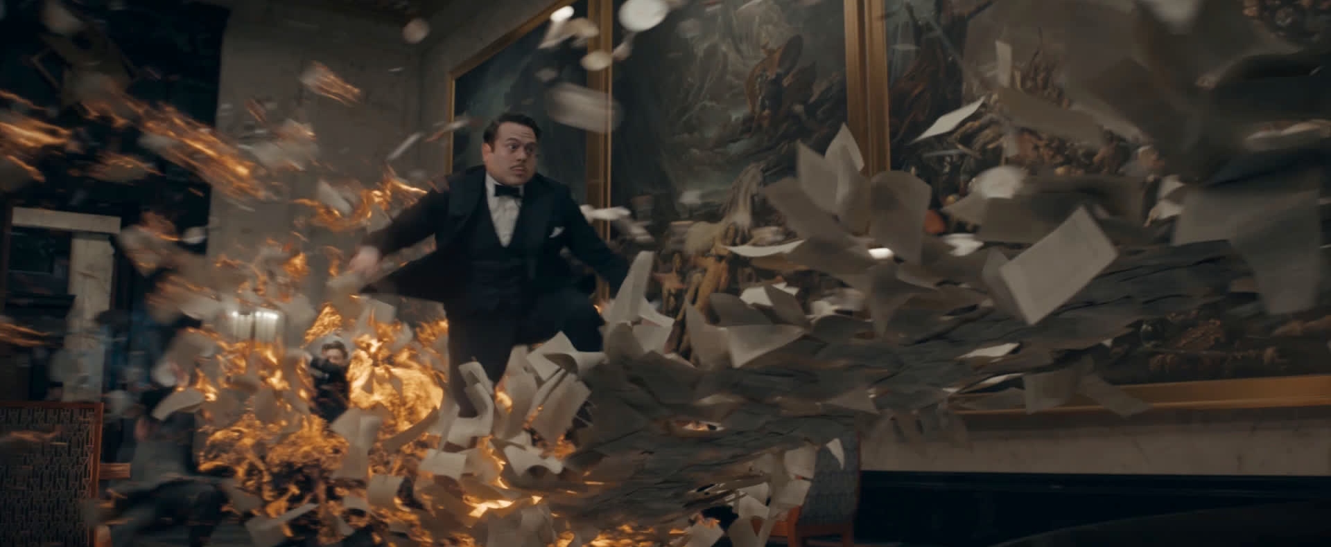 แต่พายุไม่ได้รวมอยู่ในส่วนของอาร์ทเวิร์ค ในฉากการพยายามทำลายงานเลี้ยงของผู้ท้าชิงต้องอาศัยไม้กายสิทธิ์เสกกระแสลมขึ้นมา “”มันเป็นฉากที่สนุกแต่ก็ยากมาก” แมนซ์เล่ารายละเอียด “ข้าวของที่ใช้ตกแต่งฉากทุกชิ้นตั้งแต่แอสพารากัส ล็อบสเตอร์ เครื่องดินเผา แก้วน้ำ เครื่องเงินต่างๆ ต้องถูกสแกนเพื่อให้เราสร้างภาพดิจิตอลเหมือนมันอยู่กลางพายุได้”