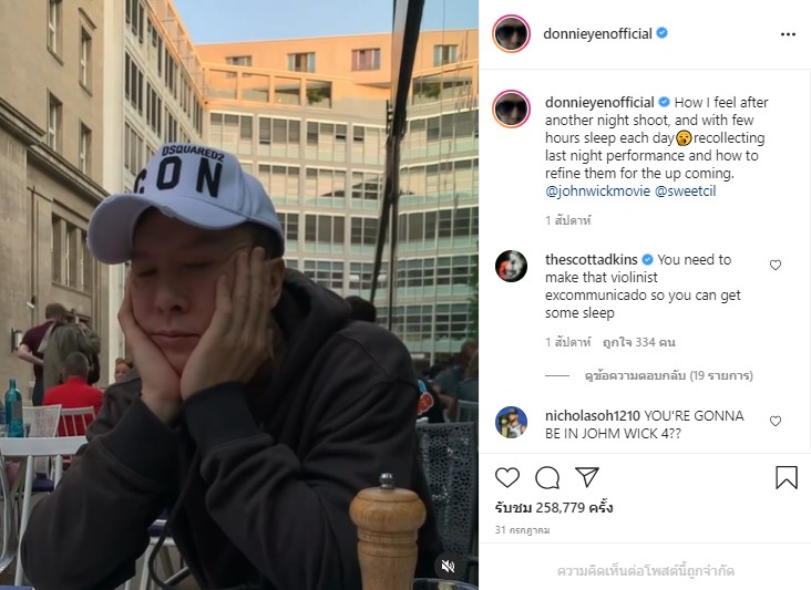 ฉากกลางคืน และการได้นอนไม่กี่ชั่วโมงในแต่ละวัน ชวนให้เราคิดไปได้เลยทีเดียวถึงความทุ่มเท และฉากแอ็คชั่นสุดดุเดือดที่อาจจะเกิดขึ้นในภาพยนตร์เรื่องนี้ คงต้องมารอดูกันว่าบทบาทของ ดอนนี เยนในภาพยนตร์เรื่องนี้จะออกมาเป็นอย่างไร โดย John Wick 4 วางกำหนดฉายเอาไว้ในช่วงเดือนพฤษภาคม ปี 2022