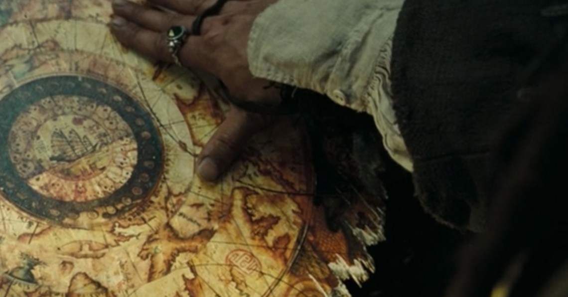 จากภาพมาจากหนัง Pirates of the Caribbean ภาค At World’s End กับฉากการดูแผนที่ของโจรสลัด โดยนอกจากแผนที่การเดินเรือที่พร้อมไปด้วยการผจญภัยหาสมบัติแล้ว ภายในแผนที่ยังมี Easter Eggs ลับบางอย่างที่มาในรูปแบบของตัวการ์ตูน มิกกี้ เมาส์ ตัวละครสัญลักษณ์ประจำค่าย Disney ซ่อนอยู่ด้วย