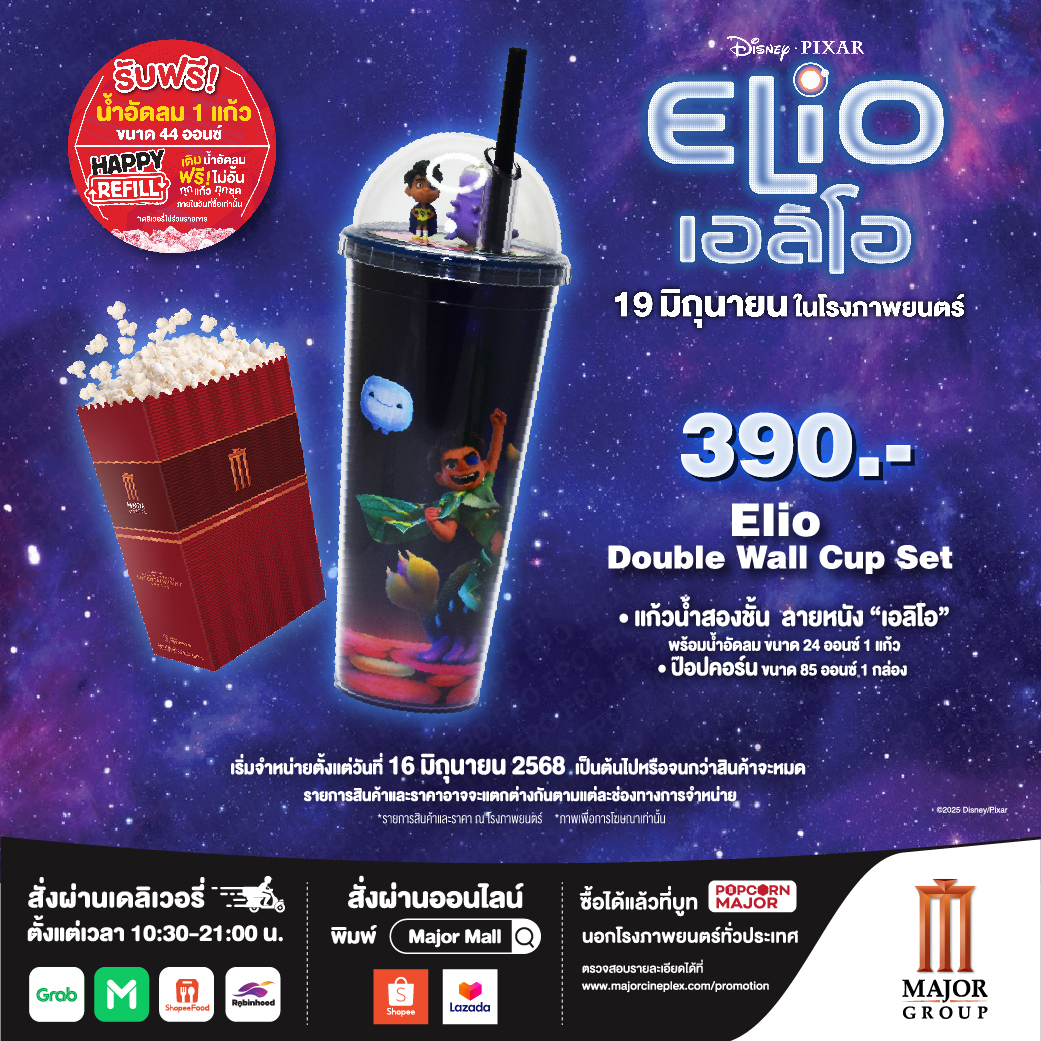 +แก้วน้ำสองชั้น ลายหนัง เอลิโอ ขนาด 24 ออนซ์ 1 แก้ว (ไม่รวมป๊อปคอร์นและน้ำอัดลม เฉพาะ packaging เท่านั้น)