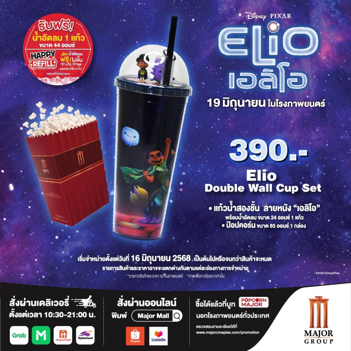 +แก้วน้ำสองชั้น ลายหนัง เอลิโอ ขนาด 24 ออนซ์ 1 แก้ว (ไม่รวมป๊อปคอร์นและน้ำอัดลม เฉพาะ packaging เท่านั้น)
