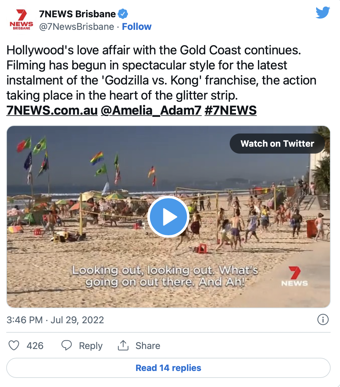 ได้มีข่าวออกมาสดๆร้อนๆเกี่ยวกับการถ่ายทำฉากการสู้กันในบริเวณหาดซึ่งถูกถ่ายทำที่ บริสเบน ควีนส์แลนด์ ซึ่งถูกกล่าวไว้โดยเฉพาะว่ามันคือการเริ่มการถ่ายทำสำหรับภาพยนตร์เรื่อง Godzilla Vs Kong 2 นั่นเอง