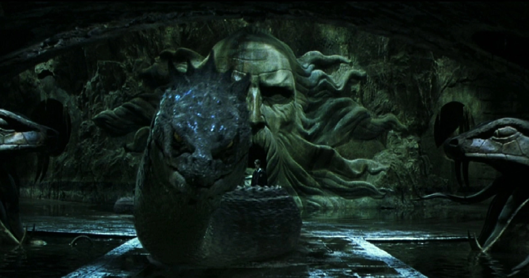 4.สัมผัสความยิ่งใหญ่อลังการของฉากห้องแห่งความลับ ซึ่งเป็นฉากที่จะปลดปล่อยบาซิลิสก์ งูยักษ์ในตำนานอสูรร้ายที่ถูกซ่อนไว้ในฮอกวอตส์ ซึ่งฉากใหญ่ๆ แบบนี้ถ้าได้ชมบนจอภาพยนตร์เหมือนเราโดนดูดเข้าไปอยู่ในเหตุการณ์นั้นเลย และได้เห็นรายละเอียดงานสร้างที่ชัดเจนมากขึ้นกว่าเดิม