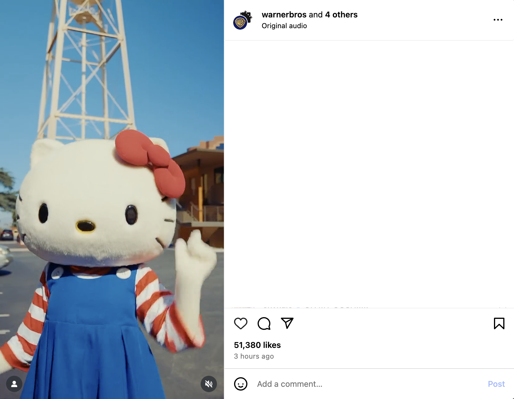หกปีหลังจากการประกาศสร้าง ในที่สุดภาพยนตร์ Hello Kitty (2028) ที่เป็นความร่วมมือระหว่าง วอร์เนอร์บราเธอส์ แอนิเมชัน และ นิว ไลน์ ซินีม่า ก็ได้กำหนดการเข้าฉายอย่างเป็นทางการเรียบร้อยแล้ว