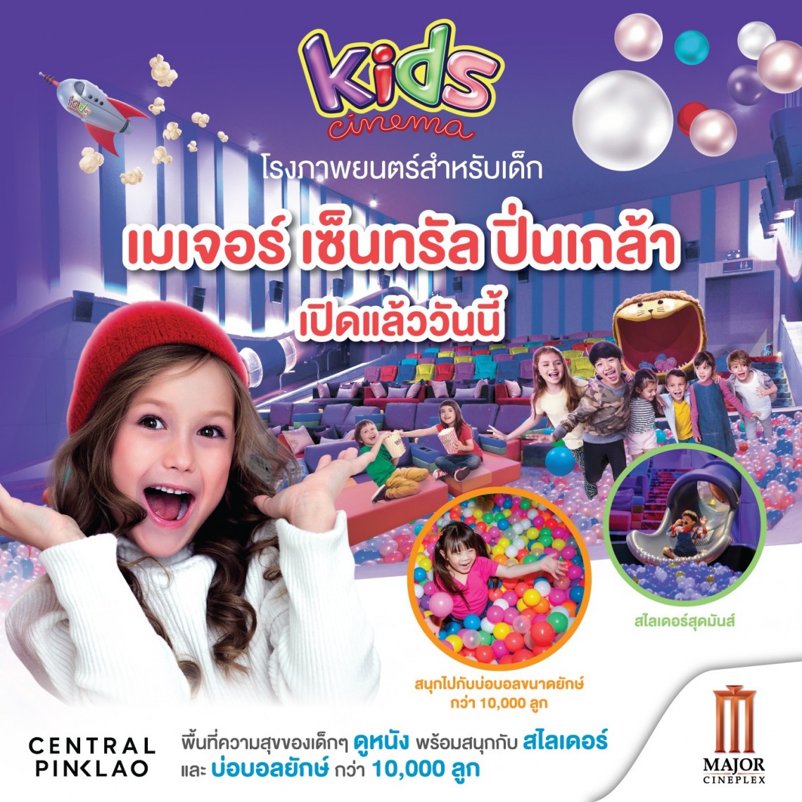 เมเจอร์ ซีนีเพล็กซ์ กรุ้ป ฉลองเปิดโรงภาพยนตร์คิดส์ ซีนีมา สาขาที่ 22 “เมเจอร์ เซ็นทรัล ปิ่นเกล้า” มาร่วมเปิดประสบการณ์การรับชมภาพยนตร์สำหรับเด็กและครอบครัว ให้สนุกและไม่น่าเบื่ออีกต่อไป ภายในโรงภาพยนตร์ออกแบบพิเศษด้วยการเพิ่มแสงสว่าง 30 % และลดเสียงลง 20 % เพื่อให้เหมาะสมกับเด็กๆ และสไลเดอร์ และบ่อบอลยักษ์มากกว่า 10,000 ลูก พร้อมโปรโมชัน และกิจกรรมพิเศษมากมาย ฉลองเปิดสาขาใหม่จากคิดส์ ซีนีมา