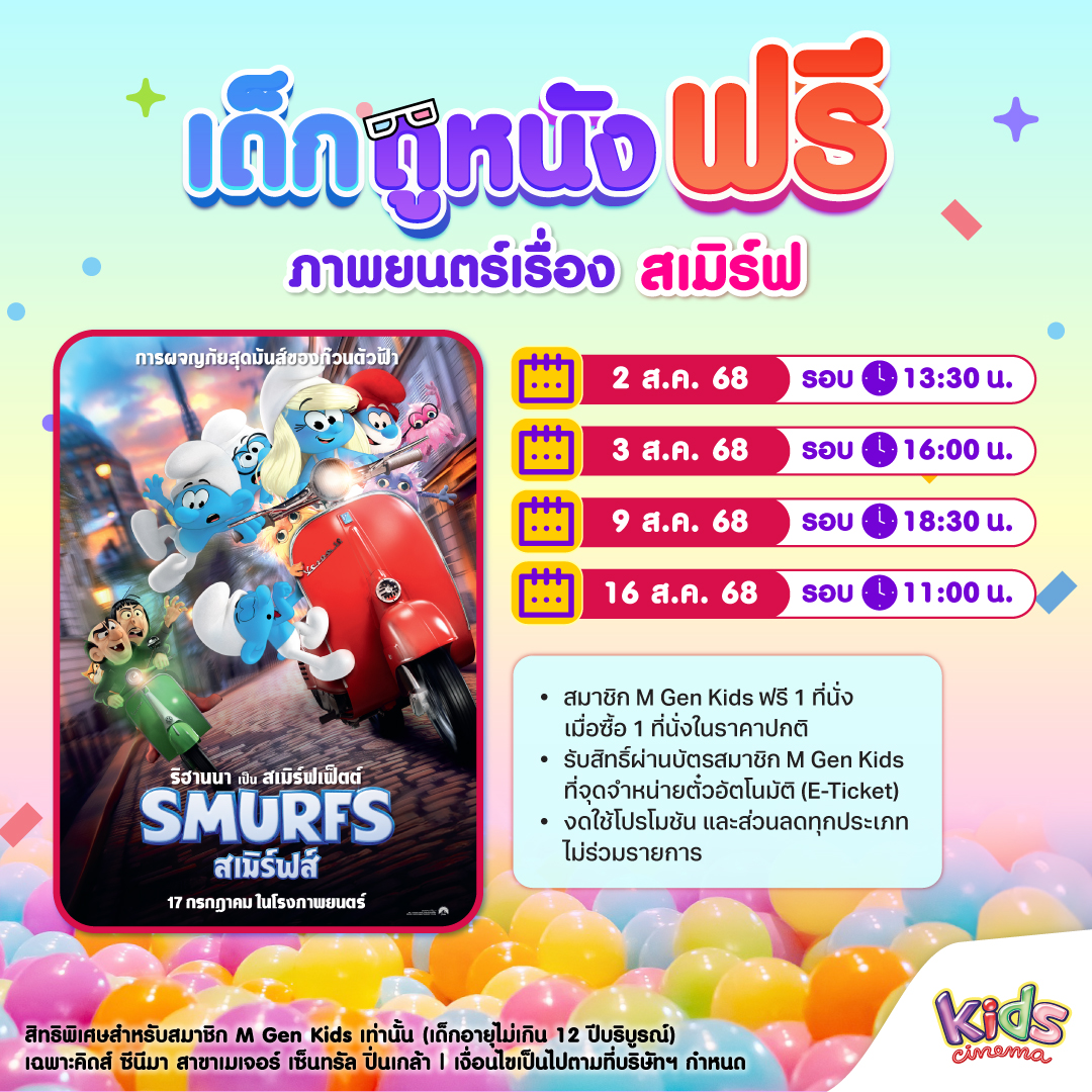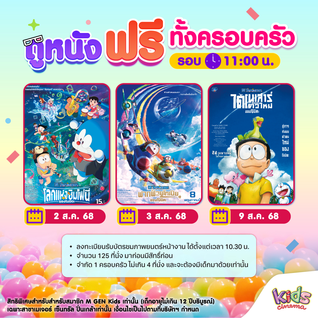 - โปรโมชันดูหนัง 1 ฟรี 1 (M Gen Kids ฟรี 1 ที่นั่ง เมื่อซื้อ 1 ที่นั่ง ในราคาปกติ)