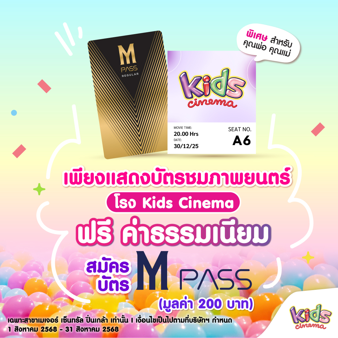 - บัตรชมภาพยนตร์คิดส์ ซีนีมา 1 ใบ ต่อการสมัคร M Pass 1 ท่าน