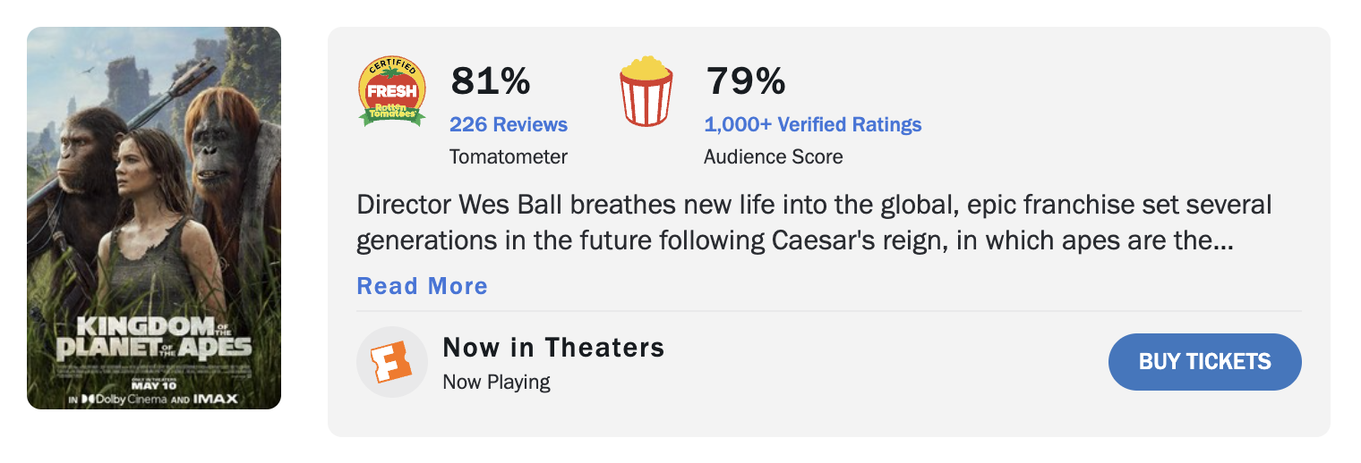 เปิดคะแนนเว็บมะเขือของ Kingdom of the Planet of the Apes หลังเข้าฉายอย่างเป็นทางการ