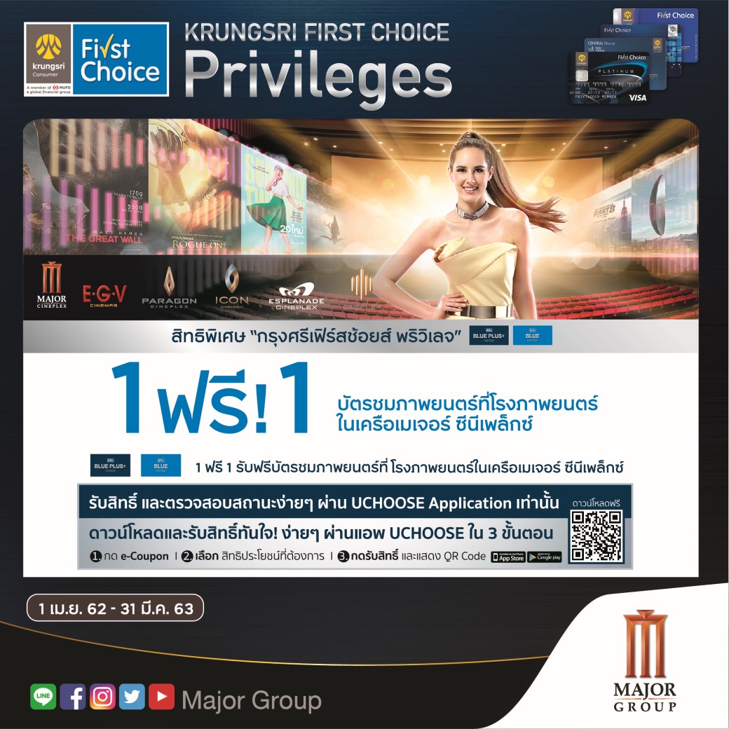สาขาที่ร่วมรายการ : โรงภาพยนตร์ในเครือเมเจอร์ ซีนีเพล็กซ์, อีจีวี ทุกสาขา,พาราไดซ์ ซีนีเพล็กซ์,หาดใหญ่ ซีนีเพล็กซ์, เวสต์เกต ซีนีเพล็กซ์, อีสต์วิลล์ ซีนีเพล็กซ์,ไดอาน่า ซีนีเพล็กซ์,อยุธยาซิตี้พาร์ค ซีนีเพล็กซ์, บลูพอร์ต ซีนีเพล็กซ์, โคราช ซีนีเพล็กซ์ ,ซีคอน ซีนีเพล็กซ์ ,พารากอน ซีนีเพล็กซ์,เอสพลานาด ซีนีเพล็กซ์, เมกา ซีนีเพล็กซ์,พรอมานาด ซีนีเพล็กซ์, ไอคอน ซีเนคอนิค ยกเว้น ควอเทียร์ ซีเนอาร์ต