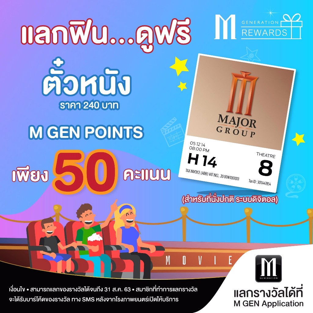 สมาชิก M GEN ใช้ 50 คะแนนแลกรับ ตั๋วหนัง 1 ใบ (ที่นั่งปกติ)