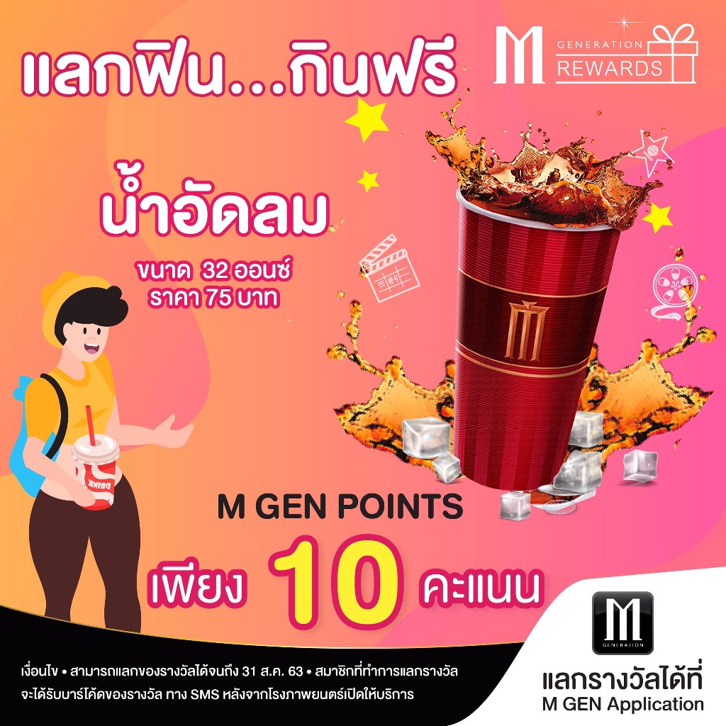 สมาชิก M GEN ใช้ 10 คะแนนแลกรับ น้ำอัดลม ขนาด 32 ออนซ์ 1 แก้ว