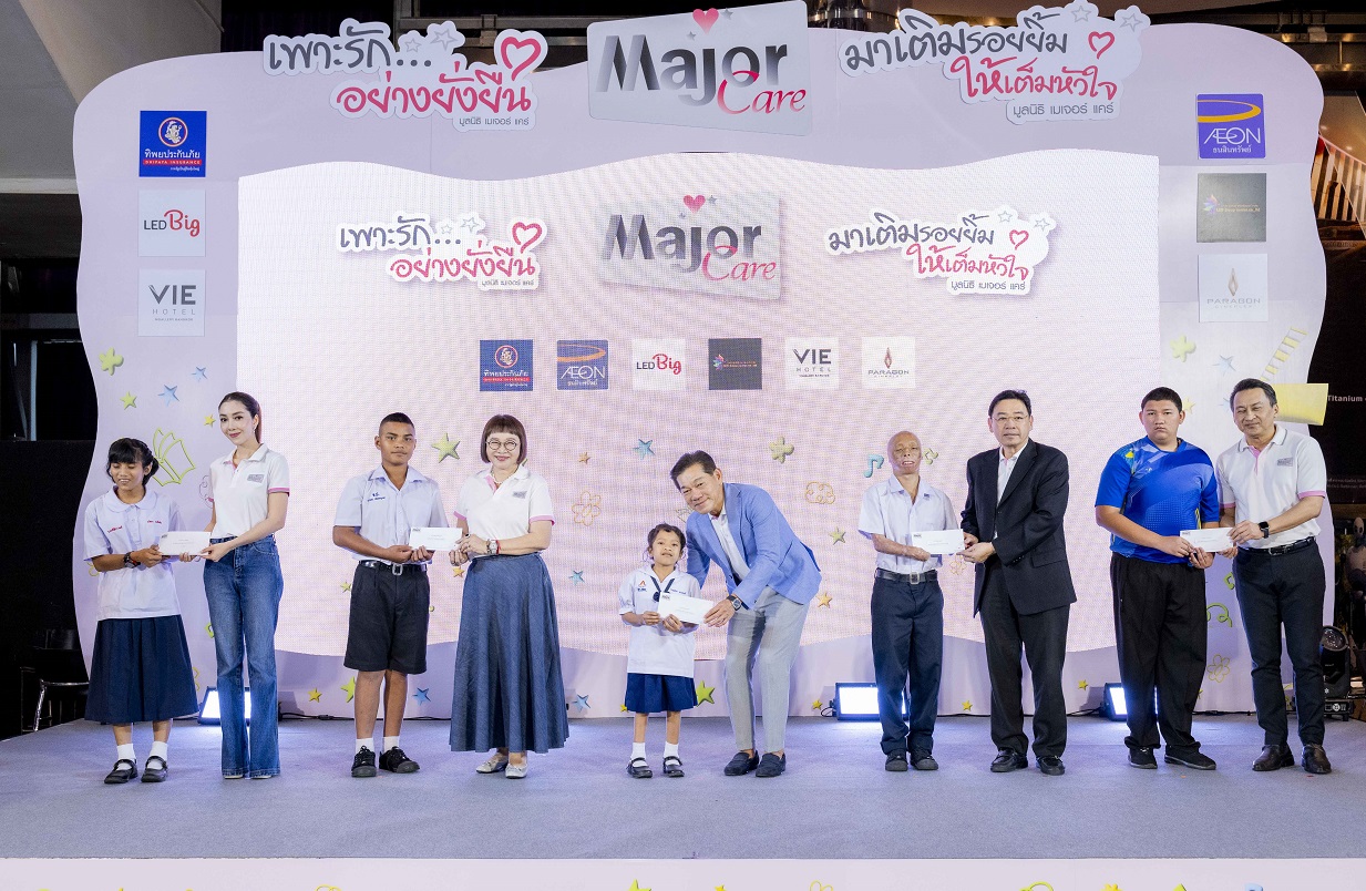 นับเป็นเวลา 11 ปี ที่ มูลนิธิ เมเจอร์ แคร์ ได้ขับเคลื่อนสร้างโอกาสทางการศึกษาให้กับเด็กและเยาวชนที่ด้อยโอกาสในพื้นที่ห่างไกลเพื่อให้เข้าถึงแหล่งเรียนรู้ ควบคู่ไปกับการดำเนินกิจกรรมต่าง ๆ ผ่าน 4 กิจกรรมหลัก คือ กิจกรรม “เปิดโลกกว้าง สร้างรอยยิ้ม”, กิจกรรมมอบทุนการศึกษาประจำปี “มาเติมรอยยิ้ม ให้เต็มหัวใจ”, กิจกรรมการจัดทำและส่งมอบ “ห้องหนังเพื่อการเรียนรู้” และ “โครงการปลูกผัก สร้างสุข สร้างรายได้” สำหรับการจัดกิจกรรมมอบทุนการศึกษาประจำปีและโบว์ลิ่งการกุศล “มาเติมรอยยิ้ม ให้เต็มหัวใจ” ในครั้งนี้ เป็นการร่วมสร้างโอกาสและความเสมอภาคทางการศึกษา ภายใต้แนวคิด “เพาะรัก...อย่างยั่งยืน” ที่ได้เริ่มปลูกคนด้วยความรัก ความห่วงใย และความมุ่งมั่นตั้งใจ บ่มเพาะขยายพันธุ์สู่การสร้างโอกาสแห่งการเรียนรู้ ให้น้อง ๆ ซึ่งเป็นต้นกล้าเล็ก ๆ เติบโตเป็นต้นไม้ที่สมบูรณ์แข็งแรงอย่างยั่งยืนต่อไป