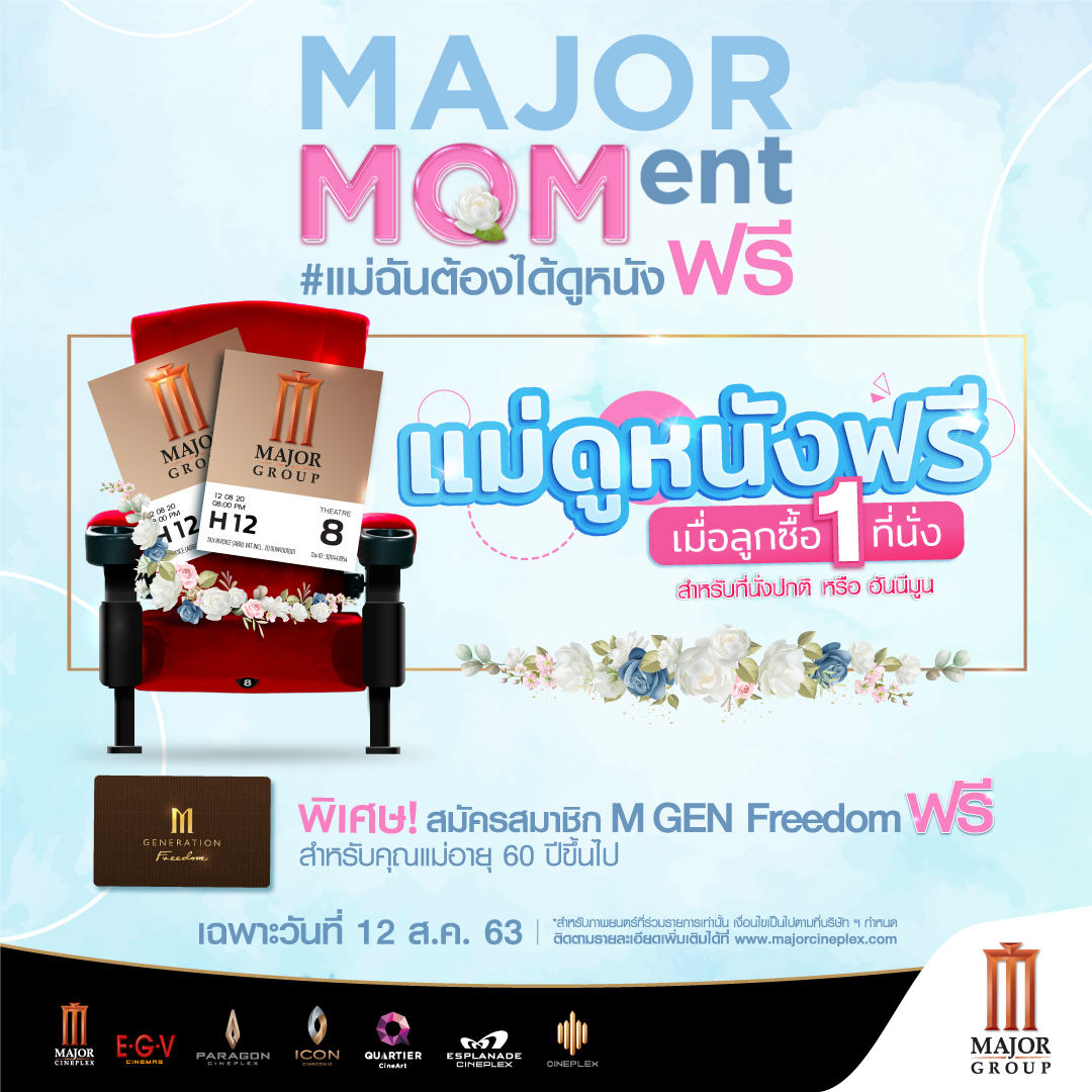 กับ Major MOMent 12 สิงหาคม 2563 นี้ คุณแม่ดูหนังฟรี ทุกสาขาฯทั่วประเทศ