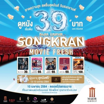เมเจอร์ ซีนีเพล็กซ์ จัดโปรโมชั่นสุดฉ่ำ ต้อนรับวันสงกรานต์ ภายใต้แคมเปญ Major Songkran Movie Freshสาดความสุข สดชื่นสุดมันส์ วันสงกรานต์ โดยจัดโปรโมชั่นมากมาย ตั้งแต่ วันที่ 10 เมษายน 2564 เป็นต้นไป ดังนี้