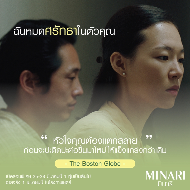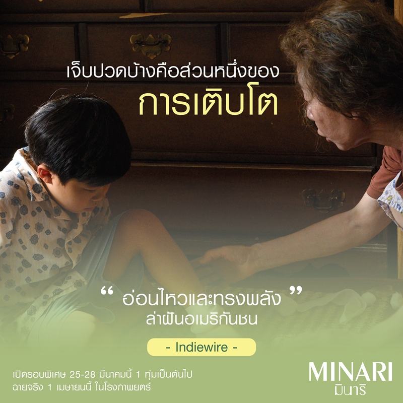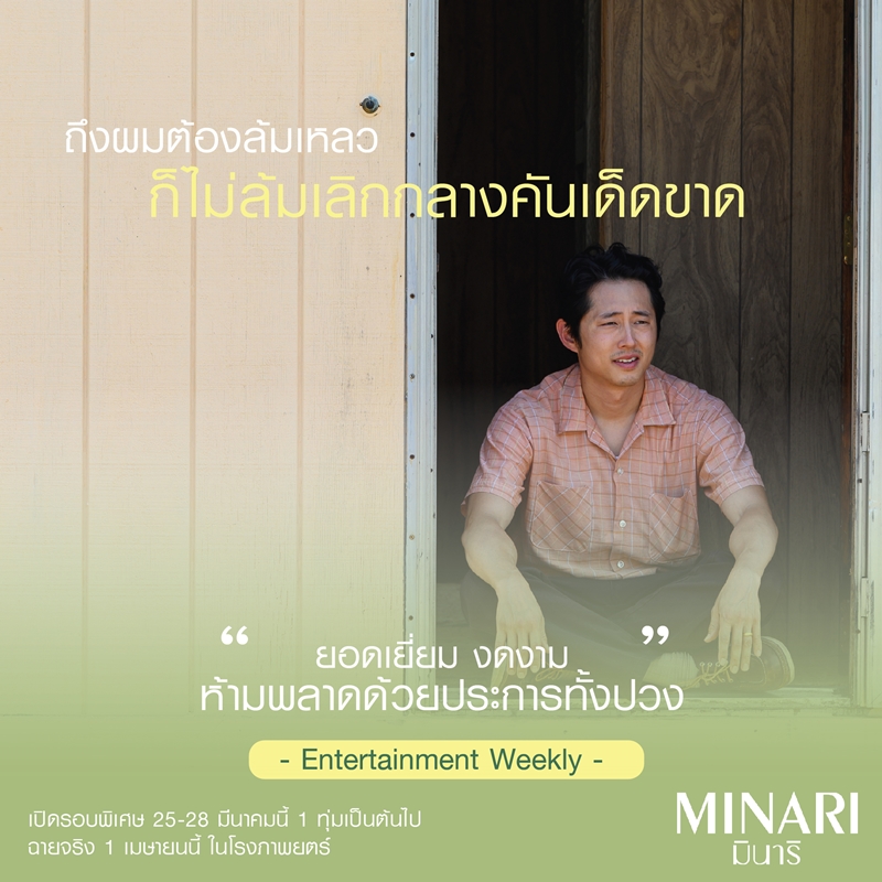“MINARI มินาริ” เปิดรอบพิเศษ 25 – 28 มีนาคมนี้ รอบเวลาตั้งแต่ 1 ทุ่มตรงเป็นต้นไป ฉายจริง 1 เมษายนนี้ ในโรงภาพยนตร์