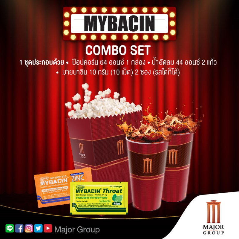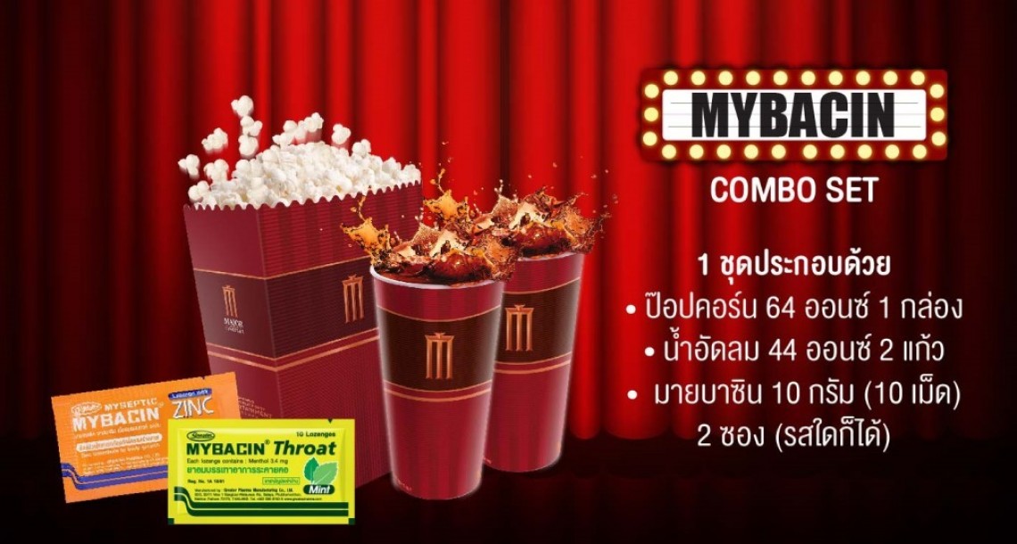 • มายบาซิน 10 กรัม (10 เม็ด) 2 ซอง (รสใดก็ได้)