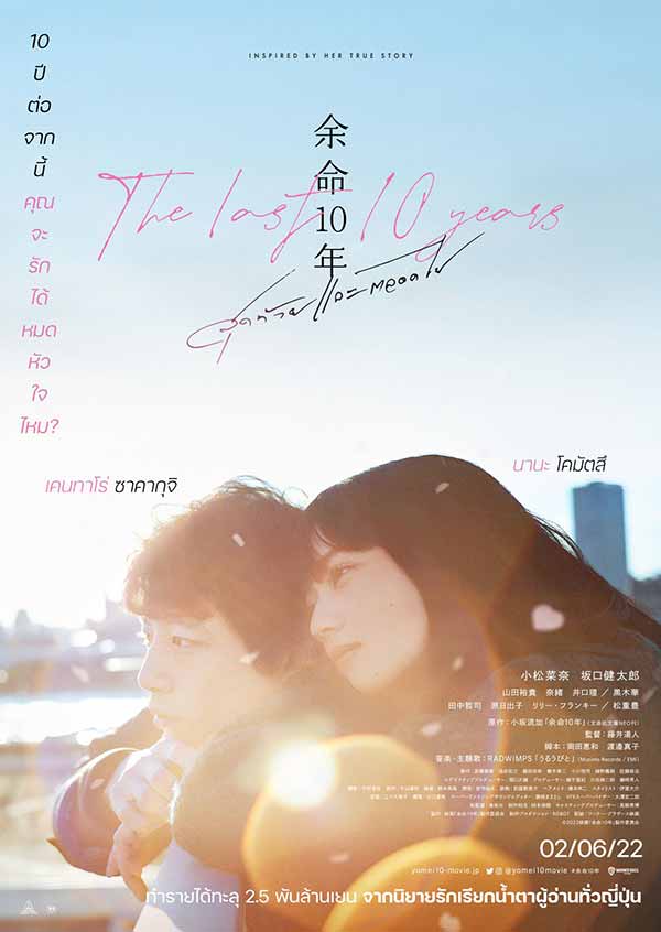 นี่เป็นเพียงแค่หนึ่งเรื่องเท่านั้นที่ นานะ โคมัตสึ เคยสร้างปรากฏการณ์เรียกน้ำตาจากคนทั่วเกาะญี่ปุ่นมาแล้ว และวันที่ 2 มิถุนายนนี้ ก็จะเป็นอีกปรากฏการณ์หนึ่งที่จะเรียกน้ำตาได้อีกเช่นกันกับเรื่อง The Last 10 Years อย่ารอช้าล่ะ หากชอบความโรแมนติกสุดซึ้งนี้ พลาดไม่ได้เชียว