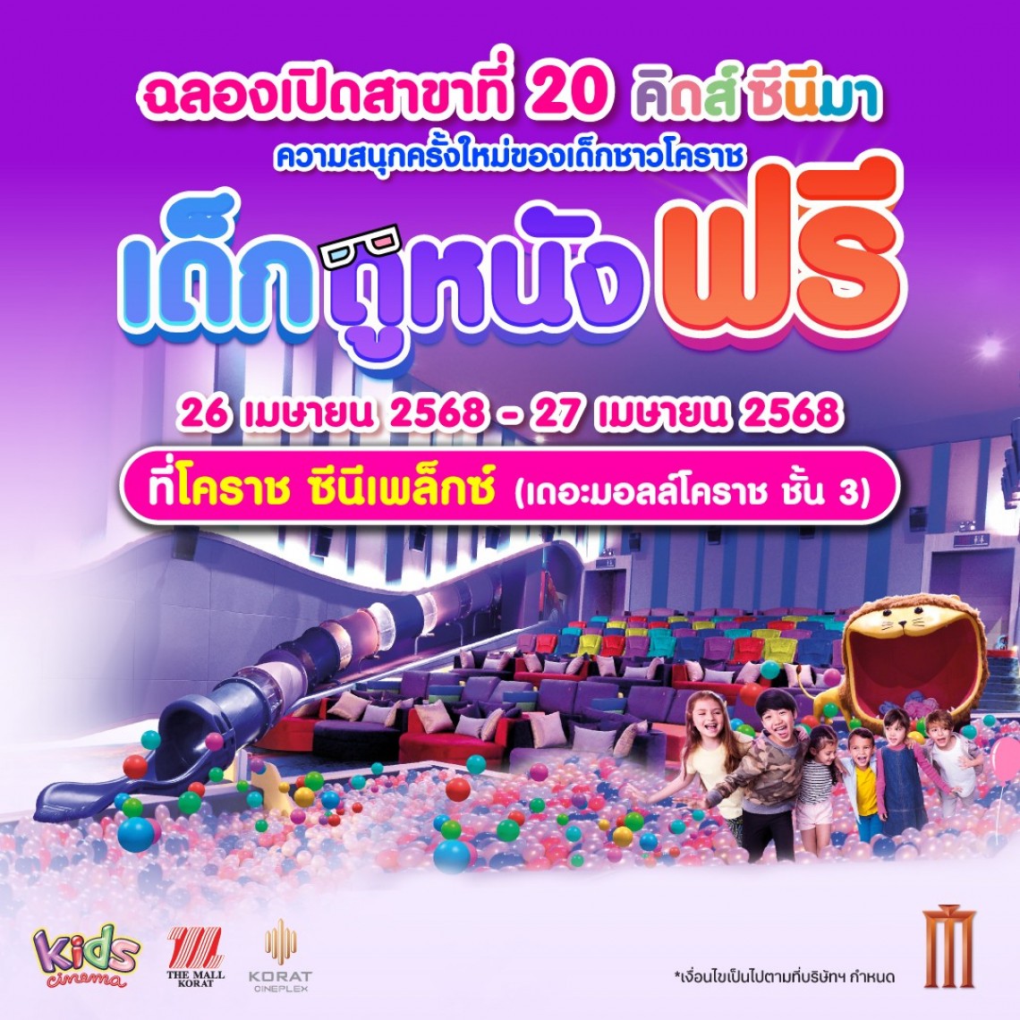 คิดส์ ซีนีมา ฉลองเปิดสาขาที่ 20 “โคราช ซีนีเพล็กซ์” ความสนุกครั้งใหม่ของเด็กชาวโคราช เด็กดูหนังฟรีตลอดวัน 26 เมษายน 2568 – 27 เมษายน 2568 ที่ โคราช ซีนีเพล็กซ์ เดอะมอลล์ โคราช ชั้น 3 พร้อมกิจกรรมภายในงานมากมาย รอติดตามเร็วๆนี้!