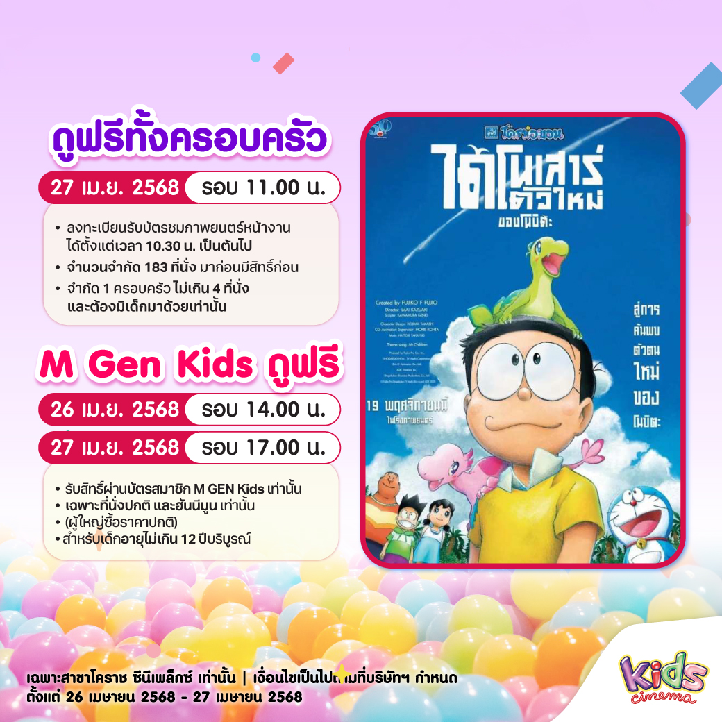 • วันอาทิตย์ที่ 27 เมษายน 2568 ภาพยนตร์เรื่อง Doraemon the Movie 2020 : Nobita's New Dinosaur รอบฉาย 11.00 น.