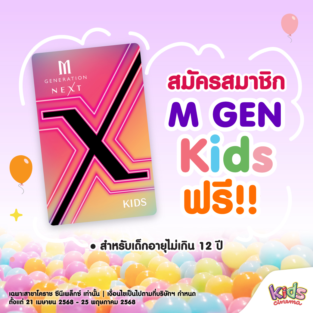 • สำหรับสมาชิก M Gen Kids ดูหนังฟรี (อายุไม่เกิน 12 ปี บริบูรณ์)