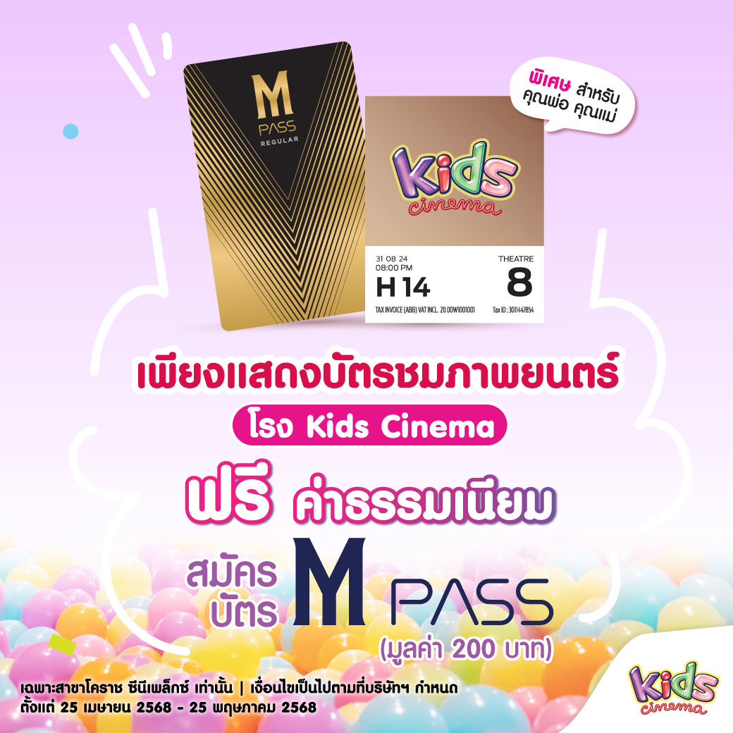 เอาใจสำหรับผู้ปกครองสมัครบัตร M Pass ฟรีค่าธรรมเนียม มูลค่า 200 บาท เพียงแสดงบัตรชมภาพยนตร์คิดส์ ซีนีมา