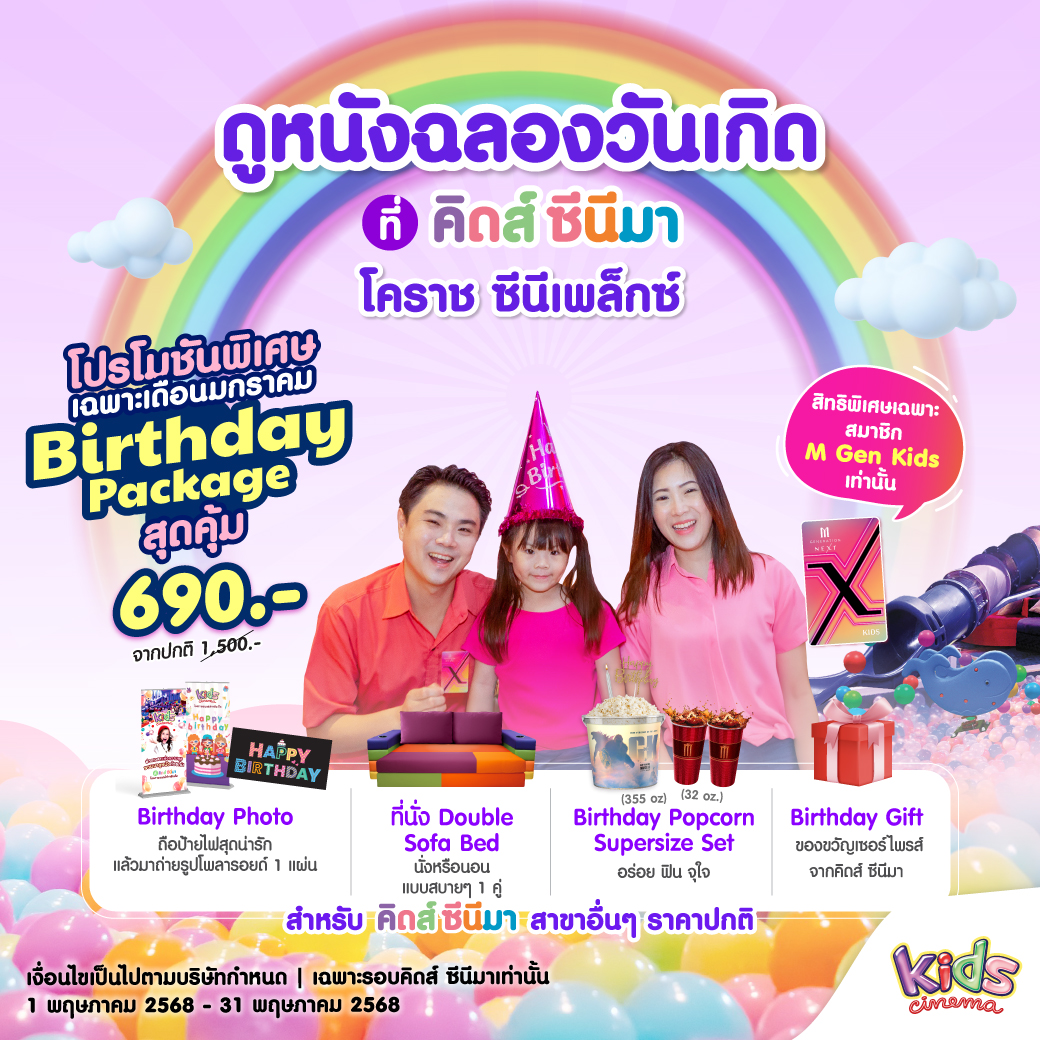 • โปรโมชันนี้ สำหรับสมาชิกบัตร M Gen Kids ที่เกิดภายในเดือนเท่านั้น โดยสามารถใช้สิทธิ์ซื้อแพ็กเกจได้ที่ตู