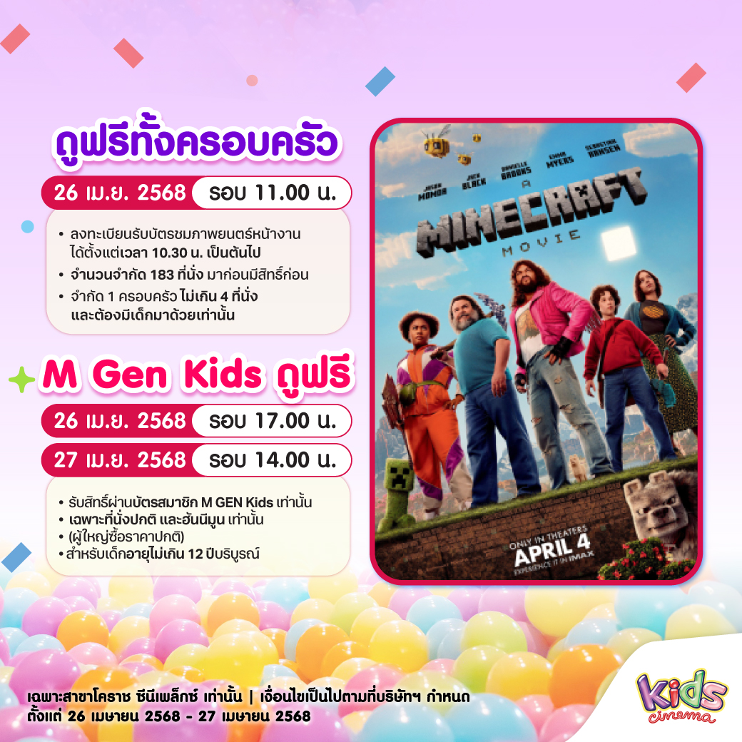 • วันเสาร์ที่ 26 เมษายน 2568 ภาพยนตร์เรื่อง A Minecraft Movie รอบฉาย 11.00 น.