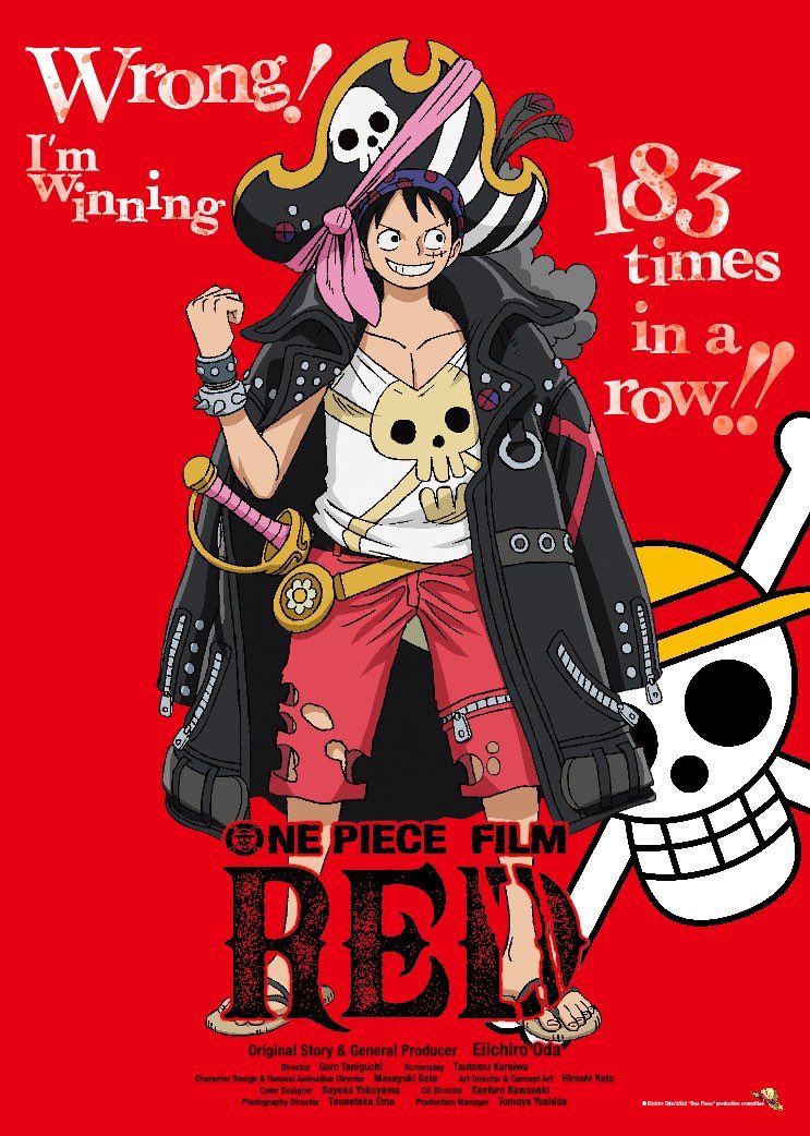 ไม่พูดถึงไม่ได้กับภาพล่าสุดจากโปรเจ็คภาพยนตร์ One Piece: Red ที่กำลังจะมีแผนเข้าฉายในโรงภาพยนตร์วันที่ 6 สิงหาคม 2565 ที่ประเทศญี่ปุ่น ซึ่งเผยให้เห็นถึงโปสเตอร์ใหม่ล่าสุดจากสองสมาชิกในกลุ่มโจรสลัดหมวกฟางและรวมไปถึงกัปตันของกลุ่มที่ไม่เอ่ยถึงไม่ได้อย่าง ลูฟี่ ซึ่งมาในชุดเสื้อกล้ามสีขาวลายหัวกระโหลกสุดเท่ห์พร้อมกางเกงสีแดงอันเหมาะสมกับชื่อภาคภาพยนตร์ว่า Red เสียจริงๆ ที่เด่นจนหยุดมองไม่ได้ก็คงจะเป็นเสื้อคลุมหนังอันมาพร้อมหมวกกัปตันโจรสลัดสีดำสุดเท่ห์ บ่งบอกถึงการเป็นกัปตันของกลุ่มโจรสลัดตัวเอก