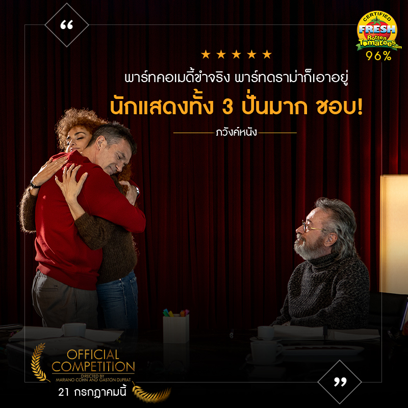 Official Competition เป็นผลงานของ 2 ผู้กำกับคู่หูชาวอาร์เจนตินา - กัสตอน ดูปราท และ มาริอาโน โคห์น ซึ่งถนัดทำหนังตลกเสียดสี หนังเรื่อง The Distinguished Citizen เคยชนะรางวัลที่เทศกาลหนังเมืองเวนิซเมื่อปี 2016