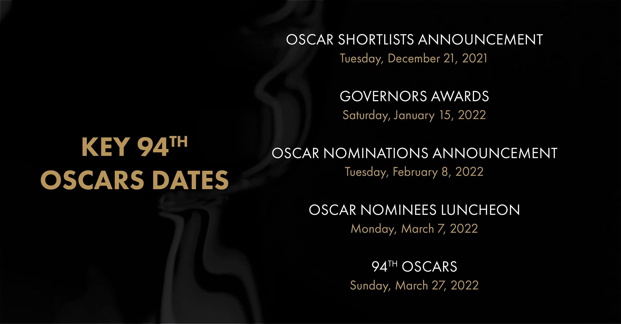 The Academy of Motion Picture Arts and Sciences ประกาศกำหนดการงานประกาศผลรางวัลอคาเดมี่ ครั้งที่ 94 ประจำปี 2022