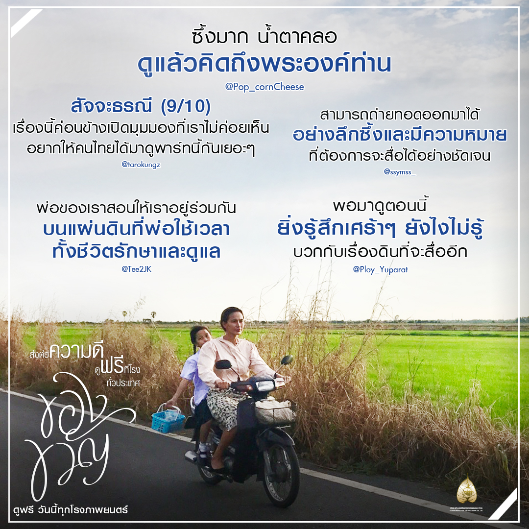 จาก 1 แรงบันดาลใจแห่งหัวใจคนไทย สู่ #ของขวัญ ที่พร้อมส่งต่อให้กับทุกคน เพราะเราเชื่อว่า ความดี ยิ่งส่งต่อ ยิ่งยิ่งใหญ่ 28 ตุลาคมนี้เป็นต้นไป ส่งต่อความดี ดูฟรีที่โรงภาพยนตร์ทั่วประเทศ