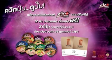 คุณสมบัติ : ลูกค้าซื้อผลิตภัณฑ์ควิกแสบ รสชาติใดก็ได้ สะสมฝา จำนวน 12 ฝา นำมาแลกรับบัตรชมภาพยนตร์ฟรี 2 ที่นั่ง รับสิทธิ์ได้ที่ บูธ M-Generation เพื่อรับ SlipBarcode สำหรับใช้ที่ตู้ E-Ticket